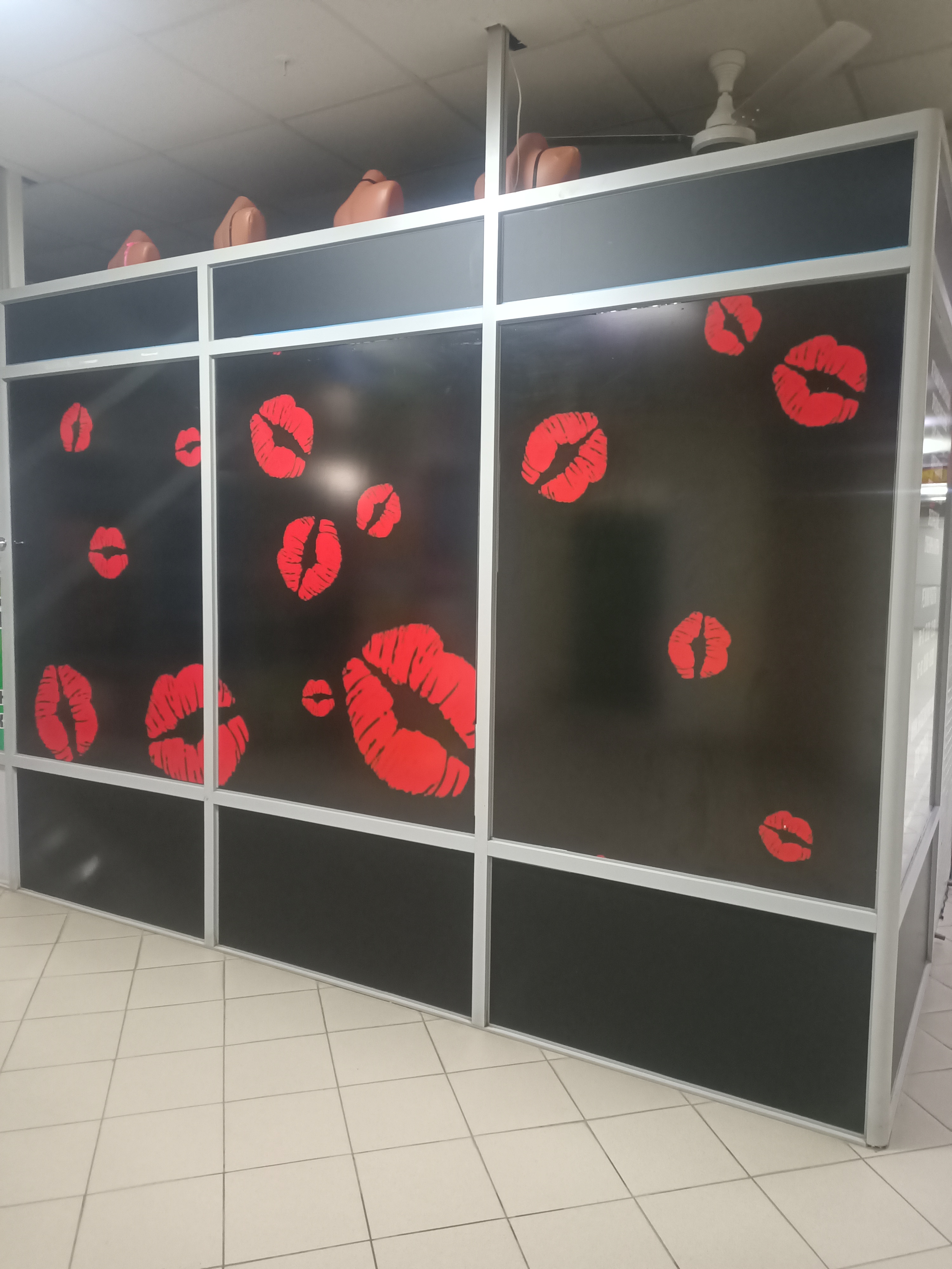 Оформили витрины в торговом центре Пушкинский отдел Штучки Шоп. Широкоформатная печать на самоклеющейся пленке качество печати 740 dpi, оклеели витрины. планшет вывеска над входом основа ПВХ 5 мм.