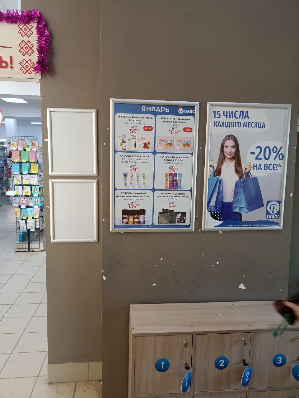 Бекар Медиа изготавливаем световые и не световые рамки с клик профилем. Смонтировали в магазине бытовой химии Плес.